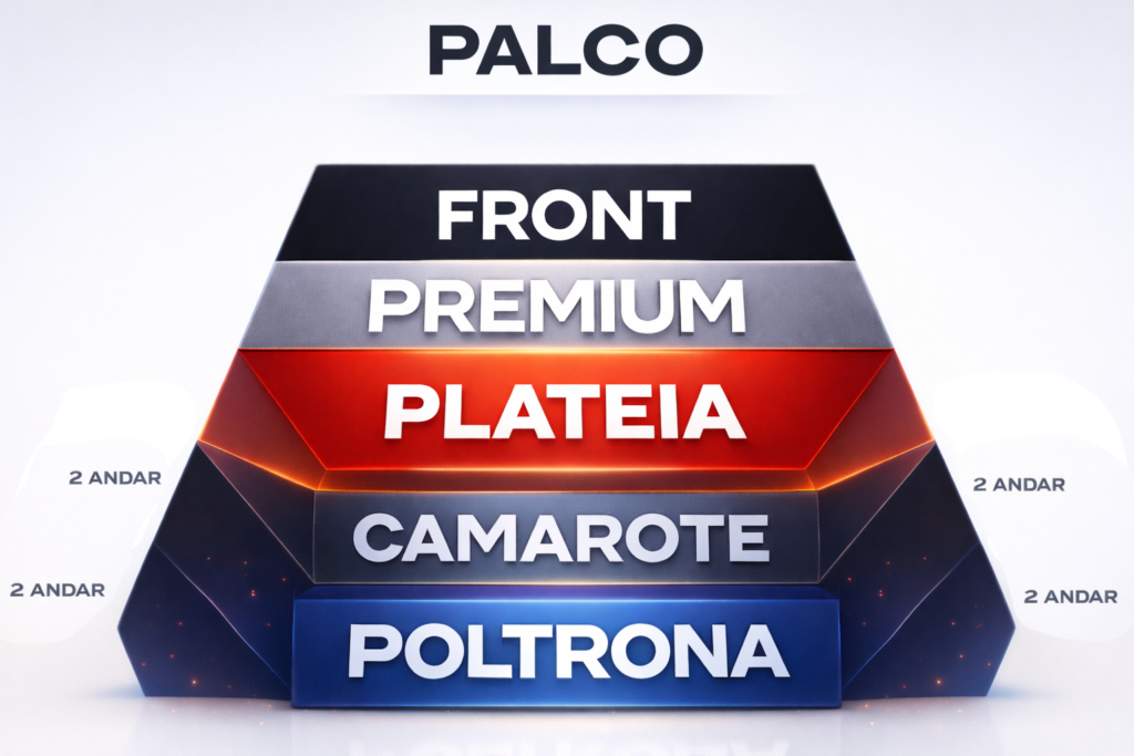 O setor Poltrona Superior está localizado no segundo andar, na parte posterior do auditório, oferecendo uma visão ampla e confortável de todo o ambiente.